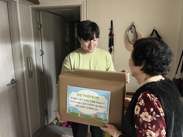 [탐사일보 김리든 기자] 다원 기부문화봉사단은 지난 15일, 대구 동구 방촌동 일대 저소득 홀몸 어르신 세대를 직접 방문해 생필품 꾸러미 25상자(200만 원 상당)를 전달했다.