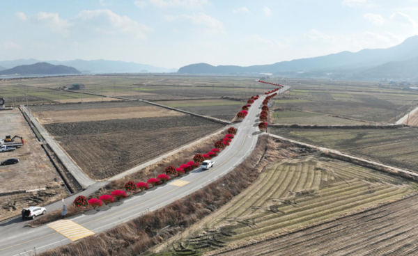 군은 보행 안전과 농로 이용을 고려해 식재 구간을 선정하고, 토양 개량 및 유기질 비료를 활용해 수목 생육환경을 개선할 계획이다. 특히 계절감을 살릴 수 있는 동백나무 및 화살나무를 식재해 사계절 경관성을 확보한다.
