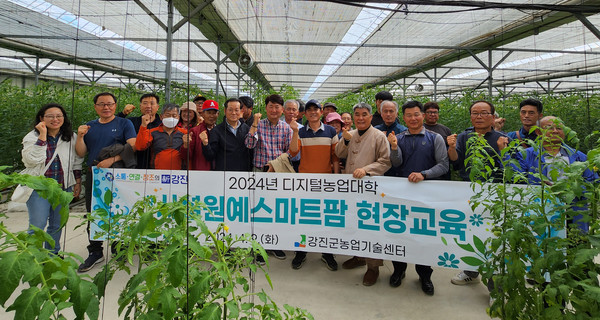 [탐사일보=차윤경기자] 강진군 농업기술센터가 지난 9일과 11일 제1기 디지털농업대학 시설원예스마트팜 과정과 스마트한우 과정의 상반기 현장교육을 진행해 농업인들로부터 호응을 얻었다.