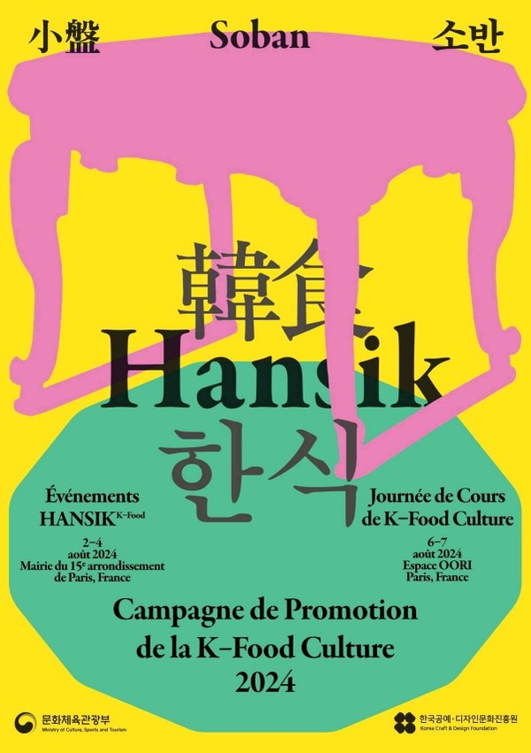 문화체육관광부(장관 유인촌, 이하 문체부)는 한국공예·디자인진흥원(원장 장동광, 이하 공진원)과 함께 올림픽이 열리고 있는 프랑스 파리에서 8월 2일부터 7일까지 '2024 한식문화 홍보 캠페인(Campagne de Promotion de la K-Food Culture 2024)'을 열어 한국의 다채로운 맛과 멋을 알린다.