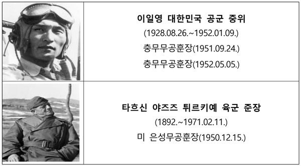 [탐사일보 김리든 기자] 국가보훈부(장관 권오을)는 6·25전쟁 당시 대한민국 수호를 위해 공헌했던 '이일영 대한민국 공군 중위'와 '타흐신 야즈즈 튀르키예 육군 준장'을 "2026년 1월 이달의 6·25전쟁영웅"으로 선정했다.